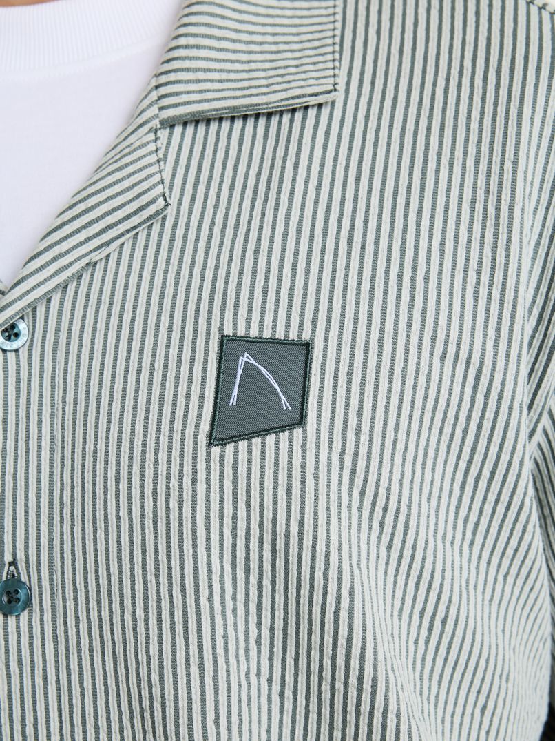 De Doby Sear is een regular fit overshirt met korte mouwen en een klassieke kraag. Dit overshirt heeft een gestreept patroon en is gemaakt van seersucker stof, waardoor het een speciale structuur heeft en licht en zacht aanvoelt. Ideaal voor de warmere dagen! De Doby Sear is daarnaast voorzien van stretch voor extra draagcomfort en hij is afgewerkt met een CHASIN' logo op de borst.