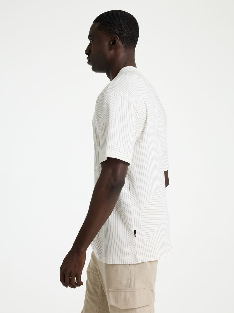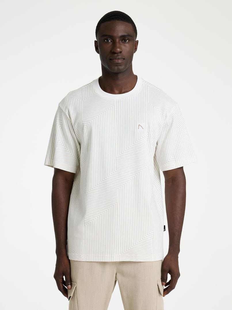 De Miro is een loose fit t-shirt met een ronde hals die is gemaakt met een interlock-stofsamenstelling. Dit zorgt ervoor dat het shirt steviger en gladder aanvoelt en een hoogwaardige uitstraling heeft. Dit t-shirt is gemaakt van 100% katoen, ontworpen met een all over print en hij is afgewerkt met een tonal CHASIN' logo op de borst.